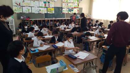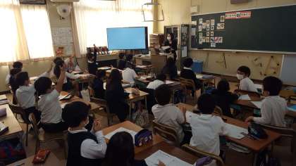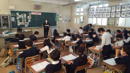 3年生の栄養教育の授業の様子です。東小橋小の栄養教諭に来校いただいて食育の授業を受けました。食物の旬について学習しました。旬の食材のよさについて知識を広げることができました。