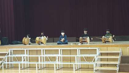 講堂で民族クラブの活動がありました。発表会を控えての練習も佳境を迎えています。練習できるのは今日を入れて後2回です。いい当日が迎えられるようにがんばりましょう。