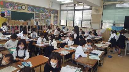 1年生の国語の授業の様子です。新しい漢字ノートにていねいに書いていました。漢字は、これからどんどん増えていくのでしっかり書く習慣を身につけておきましょう。