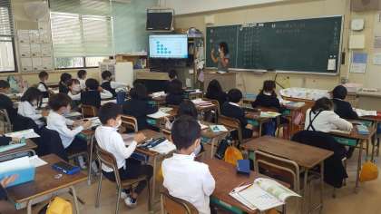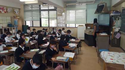 2年生の算数の授業の様子です。4の段のかけ算を学習していました。九九もだんだんと難しい段になっていきます。がんばりましょう。