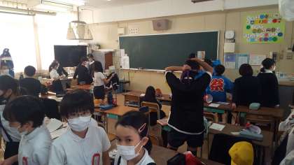 4年生の学習発表会の練習の様子です。子ども達が分かれてそれぞれで練習しています。みんなやる気満々です。