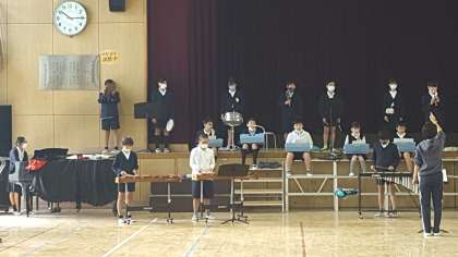 6年生の発表会に向けての練習の様子です。講堂で器楽発表の練習をしていました。小学校最後の発表会です。悔いの無いようにがんばりましょう。