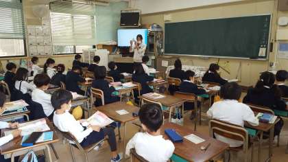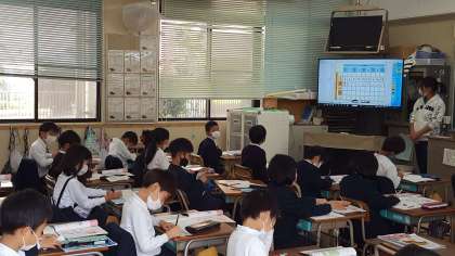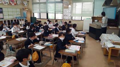 2年生の算数の授業の様子です。マスを使ったかけ算の練習をしていました。説明を聞いて早速問題にチャレンジしていました。
