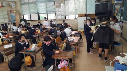 2年生の図画工作の授業の様子です。学習発表会に使う衣装や小道具を作っていました。子ども達にとっては初めての大きな発表会です。楽しみにしている様子が伝わってきました。
