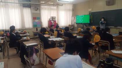 6年生の算数の授業の様子です。習熟度別2分割で授業をしていました。「比」の練習問題を解いていました。難しい内容ですががんばりましょう。