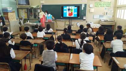 1年生の国際理解教育の授業の様子です。韓国朝鮮の文化についての授業を受けました。飛行機を使えば、韓国まで1時間半で行けることや、よく似た内容の昔ばなしがあることや、民族衣装・じゃんけん・歌等も教えていただきました。また、民族クラブのこと、本校にも多くの韓国朝鮮籍の子や、ルーツをもつ子がいることも知りました。子ども達は、楽しく有意義な時間を過ごすとができました。