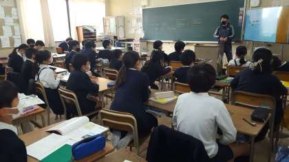 5年生の社会の授業の様子です。復習問題の答え合わせをしていました。一つずつていねいに確認していました。