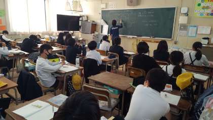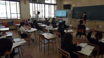 4年生の算数の授業の様子です。習熟度別2分割で授業をしていました。図形の面積について学習していました。応用した内容だったのですがしっかり考えて答えを導いていました。