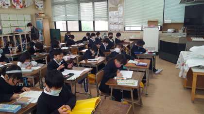 2年生の算数の授業の様子です。練習問題をしていました。と手の字図化に集中して問題に取り組んでいました。