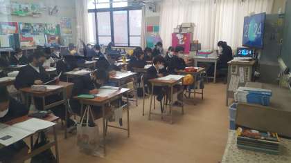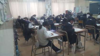5・6年生の経年調査の様子です。静かに集中し取り組んでいました。明日は、算数・理科・英語があります。がんばりましょう。