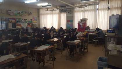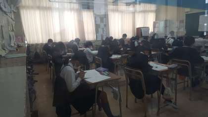 5・6年生の経年調査(2日め)の様子です。今日は算数・理科・英語の3教科があります。大変ですが、最後までがんばりましょう。