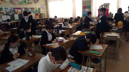 6年生の道徳の授業の様子です。2学期の振り返りのプリントをしていました。緊急事態宣言があけてからいろいろなことが急に押し寄せてきた2学期でした。今までを振り返り、しっかりと記録に残しておきましょう。