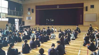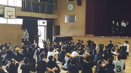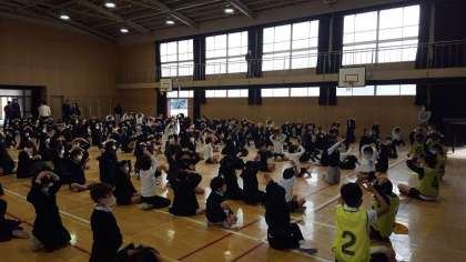 本日講堂で児童集会を行いました。今日は、〇×クイズでした。中道小学校に関する問題でしたが難しく、全問正解者は10人ほどしかいませんでした。いつものように全問正解者には温かい拍手が送られました。