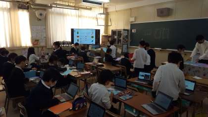 3年生の外国語活動の様子です。クリスカードを作っていました。パソコンで英語の授業の様子です。文などを検索したりしながら、楽しんで作っていました。
