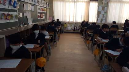 5年生がテストをしていました。最後の最後までがんばりましょう。