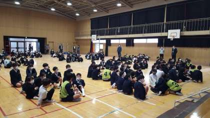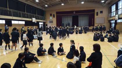 講堂で児童集会を行いました。今日は、クイズ「何が通ったでしょう?」でした。カーテンの隙間を通ったものを当てます。ハンガーなど難しいものもありました。