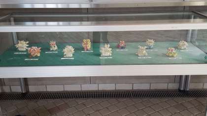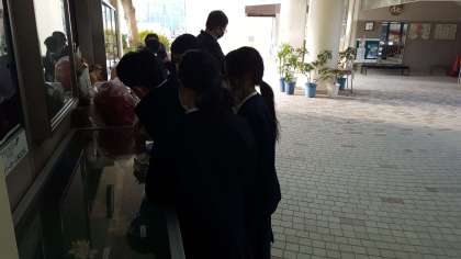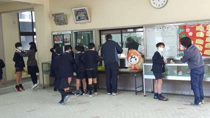 6年生の図画工作の授業の様子です。焼きあがったシーサーを玄関の展示ケースにかざっていました。どれも個性的でユニークな作品です。来校の際にはご覧ください。
