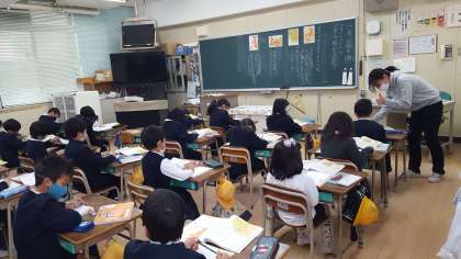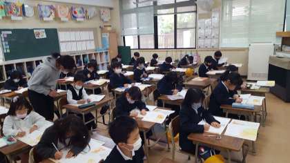 2年生の道徳の授業の様子です。「きつねとぶどう」の題材で、家族への感謝について考えていました。一生懸命感想を書いていました。