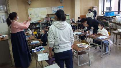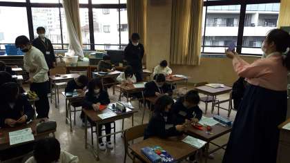 新年1回目の民族クラブの活動がありました。ポッ チャリ(福しゃくし)を折り紙で作りました。1人ずつていねいに折っていました。とても美しくできあがりました。