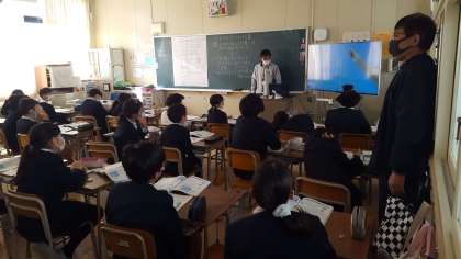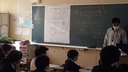 5年生の理科の授業の様子です。水溶液の性質の学習をしていました。この後、水溶液を使った実験をします。火も使うので安全に実験をしましょうね。