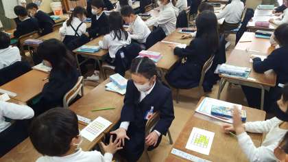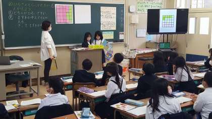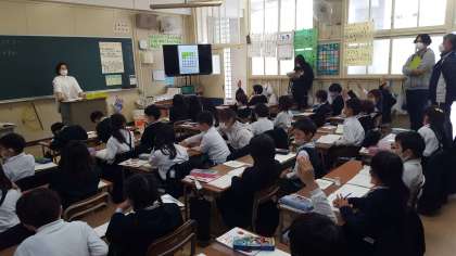 1年1組で算数の授業研究会を行いました。「どちらがおおい どちらがひろい」の単元でした。子ども達は、多くの先生が見守る中で楽しく授業を受けていました。手を挙げて発言する場面が多く見られました。よくがんばりました。