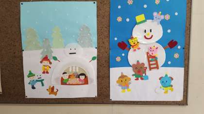 給食室の2月の掲示です。とっても可愛いですね。いつも調理員さんが作ってくださっています。