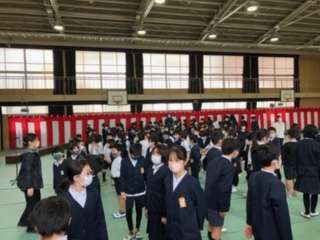 本日講堂で、修了式を行いました。児童代表に終了証を渡された後、校長先生のお話がありました。続いて生活指導担当より、春休みの注意がありました。最後に小さな声で校歌を歌いました。
