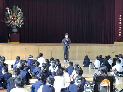 着任式では、3人の教職員の紹介がありました。学校だよりに教職員・サポーターの異動が載っていますのでご覧ください。