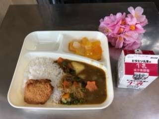 きょうの献立は、カツカレーライス・フルーツゼリー・牛乳です。