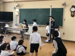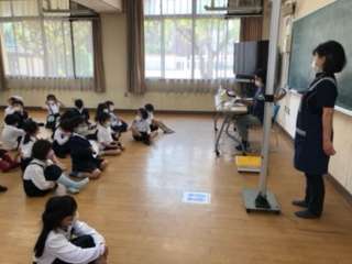 1年生の発育測定の様子です。保健指導を受けてから身長体重を測りました。ルールを守って静かに測定することができました。とても立派でした。
