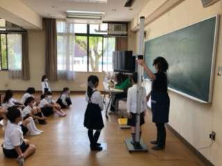 2年生の発育測定の様子です。静かに測定を受ける様子をご覧ください。とても素晴らしいです。今日の結果はお知らせしますので、持ち帰りましたらご確認ください。