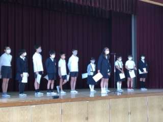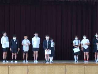 校長先生から一人ひとりに認証書が手渡された後に、各自が抱負を述べました。みんなのためにしっかり頑張ってください。