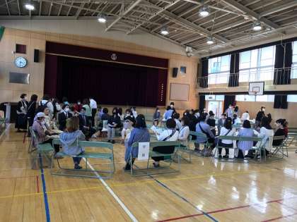 学習参観後、講堂でPTA決算委員会、予算委員会、全委員会が行われ、今年度のPTA行事と予算が了承され、各委員会に分かれて今年の取り組みについて話し合いました。