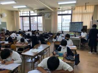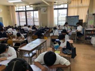 5年生の国語の授業の様子です。漢字テストをしていました。終わった子から各自の課題を静かにしていました。