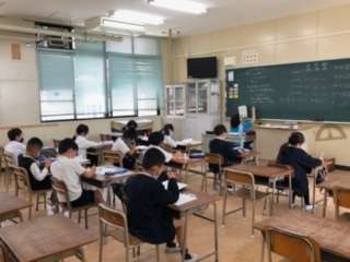 3年生の算数科の授業の様子です。習熟度別少人数で授業を受けていました。わり算の学習をしていました。つまずきやすい単元なので、しっかり学びましょうね。