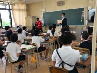 6年生の英語の授業の様子です。6年生も英語で自己紹介をしていました。聞く態度もよく慣れているなと思いました。素晴らしかったです。