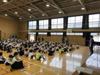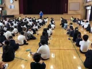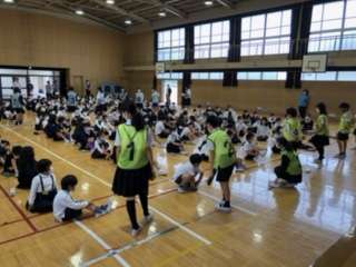 本日1校時にたてわり班の顔合わせを行いました。各教室で自己紹介をして講堂に集まりました。これから児童集会や中道ラリーを今のメンバーで行います。早くみんなの顔と名前を覚えましょうね。