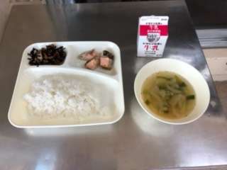 今日の献立は、鮭のごまみそ焼き・五目汁・ひじきの炒め煮・ごはん・牛乳です。
