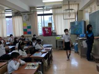 4年生の外国語活動の様子です。ペアになって挨拶をしていました。上手にできたかな?