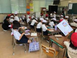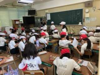 2年生の図画工作科の授業の様子です。6月の掲示物を作っていました。カタツムリのイラストを描いていました。校内に張り出された時にはご覧ください。