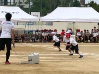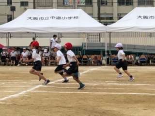 一年生の個人走の様子です。一年生は、直線で走ります。