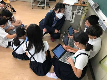 4年生は、「なかま新聞」をつくるために、インターネットから見つけた画像を保存して加工する学習をしました。