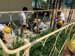 菜園の手入れをしたり、用具の片付けをしている委員会もありました。