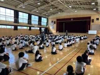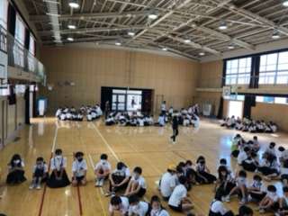 講堂で児童集会を行いました。今日は、中道夏祭りに向けての話し合いを行いました。どんなお店をするか相談しました。