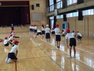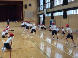 4年生の体育の授業の様子です。講堂で反復横跳びをしていました。今週はスポーツテストに取り組みます。自分の記録を伸ばせるようにがんばりましょう。
