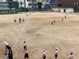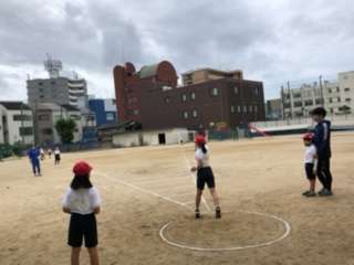 4年生のソフトボール投げの様子です。雨の合間を狙ってソフトボール投げをしています。自分がどれくらい投げられるのか?は、とても興味がありますね。自己記録を目指してがんばりましょう。