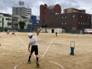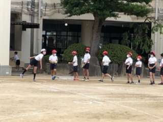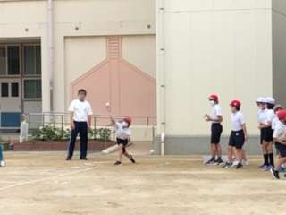 5年生のソフトボール投げの様子です。準備運動をして挑戦しています。日ごろのボールを投げる経験が結果につながります。休み時間には運動場に出て、ドッジボール等をやってみましょう。