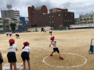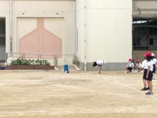 2年生のソフトボール投げの様子です。普段からよくボール運動をしている子とそうでない子の差が大きかったです。遠くに投げるためには、休み時間にドッジボールなどをしてみましょう。必ず上達します。