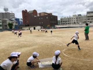 1年生のソフトボール投げの様子です。初めてのスポーツテストです。ワクワクしながら挑戦していました。雨が降らずに全学年が投げることができてよかったです。明日は50メートル走の予定です。みんながんばりましょう。