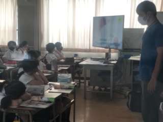 5年生の理科の授業の様子です。ヒトの誕生の学習をしていました。映像資料を視聴しながら授業を進めていました。みんな画面に注目していました。